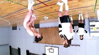 Asian girls on the volleyball squad haze a fresh member with a strapon