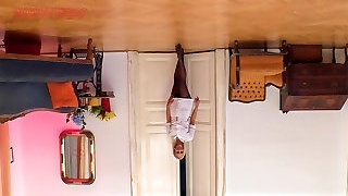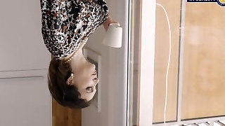 Fit amateur mature dark haired Sheena strips in the kitchen