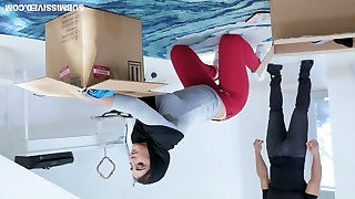 Hot brunette Aliya Brynn opens her gams to be pummeled on a table