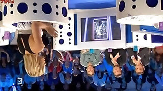 Alluring girls dancing and flashing upskirt in a club.