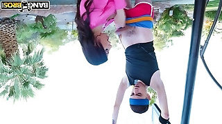 Leggy young hotty Greta gets picked up in the park and fucked doggy