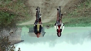Hairy chicks having vintage outdoors threesome intercourse in the backyard