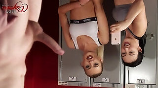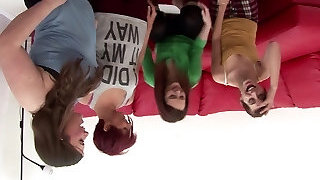 Two pretty office workers Bluelah and Jess Harrington are toying with their boss's cock in a torrid CFNM