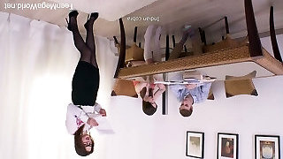Oh no! Teen girl Schoolgirl discovers her stepsister shagging with her step-father when she gets home