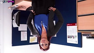 un méga cascadeur aux gros seins avec un corps mince ella knox chevauche un rôle de changement de tige et face à face