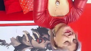 Deutscher Grubby Talk mit blonder Latexqueen beim Masturbieren