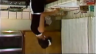Wife fucked firm with tongue while washing dishes in the kitchen, getting her to cum before her step-mother gets home.