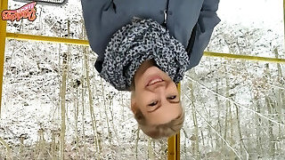 Pretty teenager girl Masha exposes her vagina on camera near the road