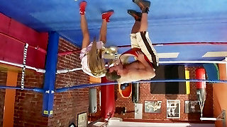 Ultra-kinky Lesbian sexfight as Wenona battle Hollie with scissors, chokes, massagers and double headed dildo fuck for loser