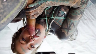 My stepsister is a weird goth with lots of tattoes everywhere. She likes fucking with me, slurping my cock and moaning, as she rails it for hours