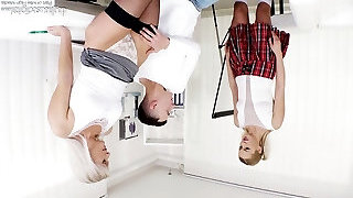 Slutty blonde Kathy Anderson goes wild on a dick while her Gf gets rear end fucked