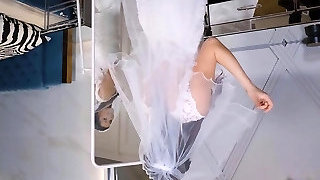 Slutty bride is prepared to fuck on the dirty public restroom floor