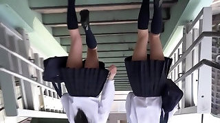 Japanese Gyaru Schoolgirls With Tan Skin and Make-up Showing Upskirt Panty Shots
