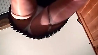 Busty blonde Milf in pantyhose upskirt tease