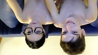 Two curvaceous teens get face fucked and pounded with big fuckpole li