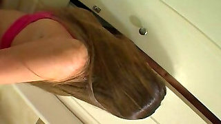 漂亮的长头发的黑发浴室和乐趣,漫长的头发