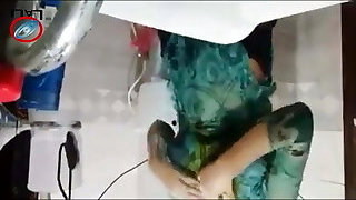 业余的印度青少年戳她的娘们与假阳具在一间浴室