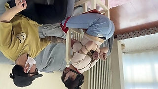 超淫绑起来古董黑头发的娘娘腔获取齿槽拧在地板上