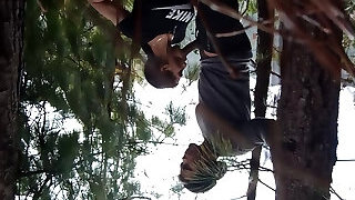 曲线优美的黑发女青少年的斗争驯服怪物黑东在POV