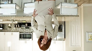 金发碧眼的被钉在厨房的桌子上,并得到了cumload在她可爱的屁股