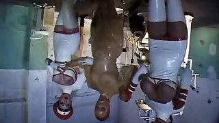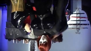 乳胶服装的2情妇穿上strapon和abase一个听话的女孩
