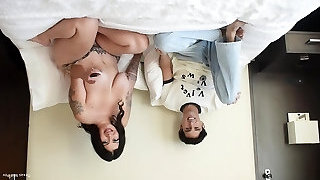 中国妈妈和儿媳共享沙发与Roomate和穿透他