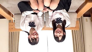 真正的亚洲的女大学生在一个铅和爱团伙爆炸