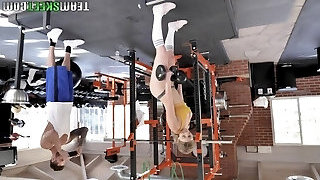 曲线优美的拉丁健身房的女孩协助角质教练和塞他的硬的阴茎