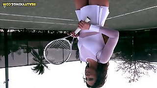 酷网球女子杰西卡*托雷斯骑硬摇滚阴茎反向和面对面