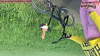巨大的有底的健身女孩拉娜Rhoades正在尝试室外旋转类