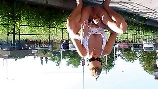 令人惊叹的中国女人与一个惊人的资产得到她的cooch手指胳肢在公共汽车上